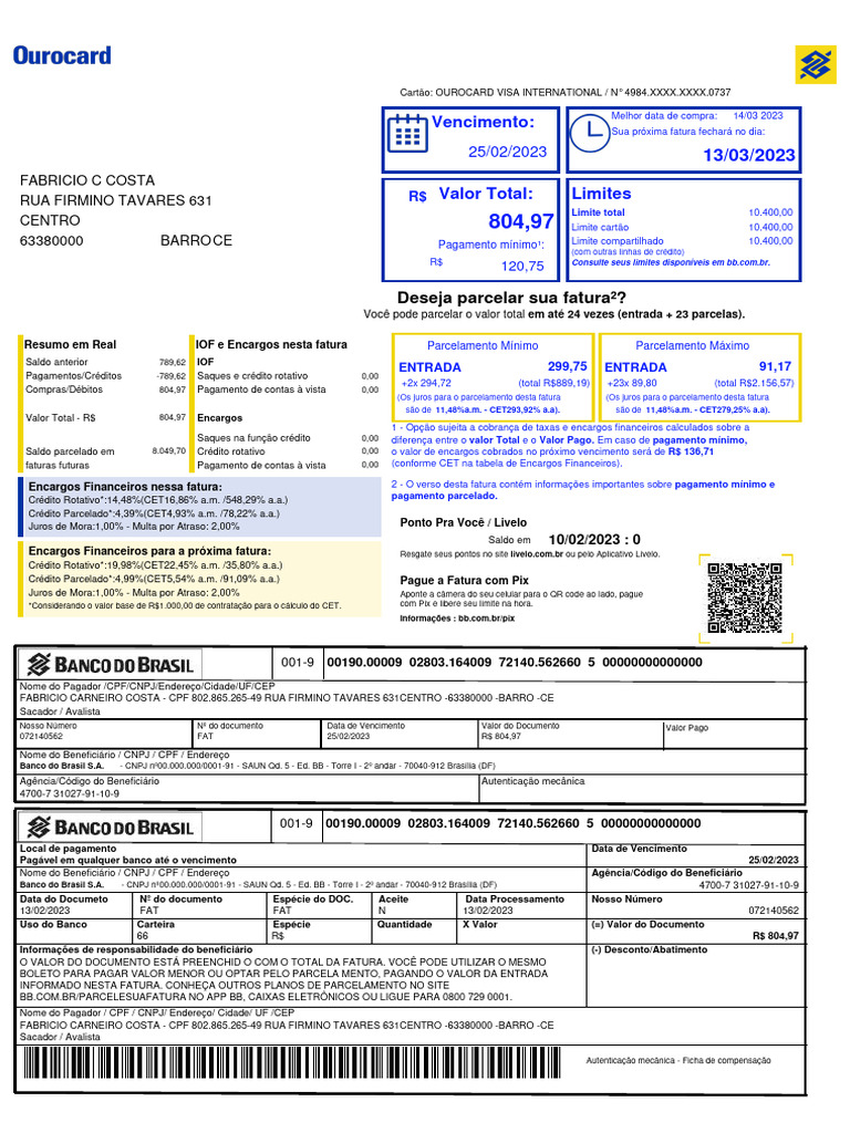 Pagável em qualquer banco até o vencimento 25/02/2023