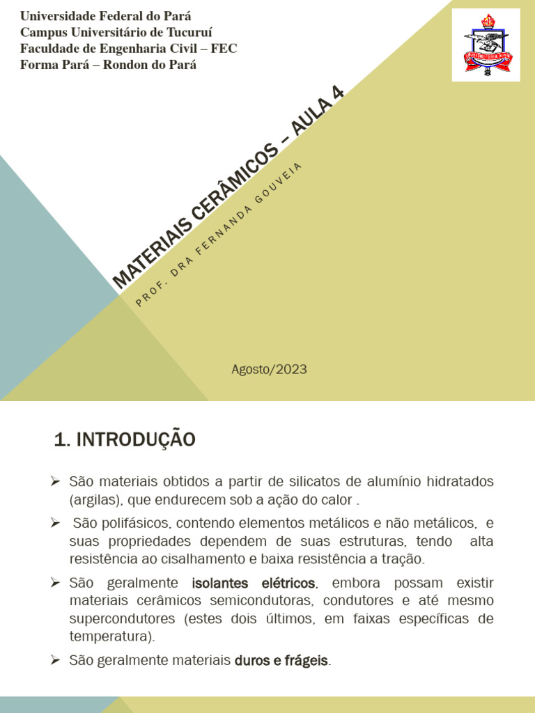 Materiais Cerâmicos Tradicionais : cerâmicas estruturais, louças,