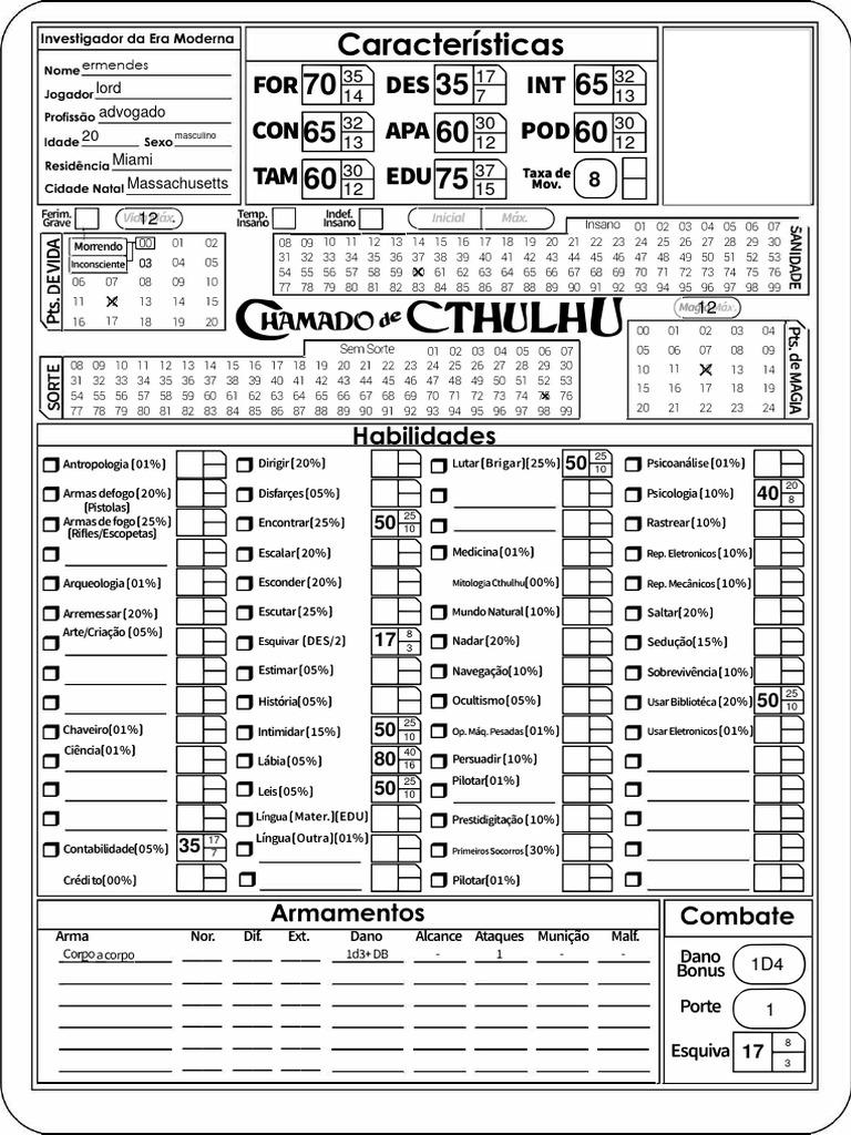 O Esquivar (D ES/2) 17 Nadar(20%) Seduc;ao[15%)