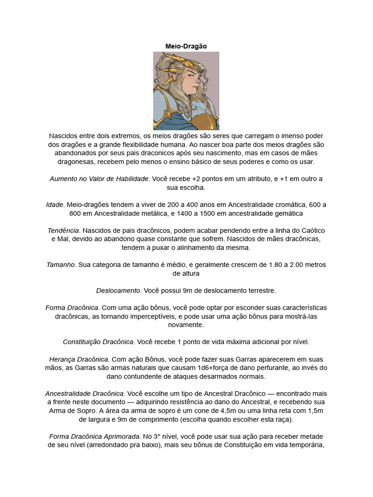 dos dragões e a grande flexibilidade humana. Ao nascer boa parte dos meios dragões são