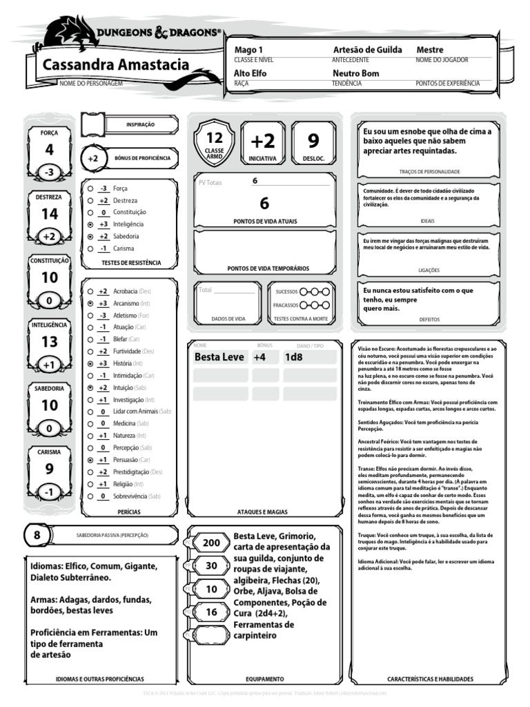 NOME DO PERSONAGEM RAÇA TENDÊNCIA PONTOS DE EXPERIÊNCIA