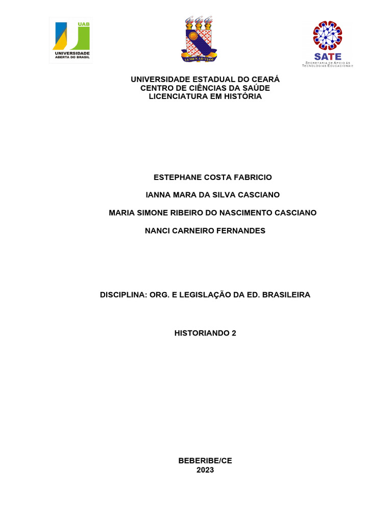DISCIPLINA: ORG. E LEGISLAÇÃO DA ED. BRASILEIRA
