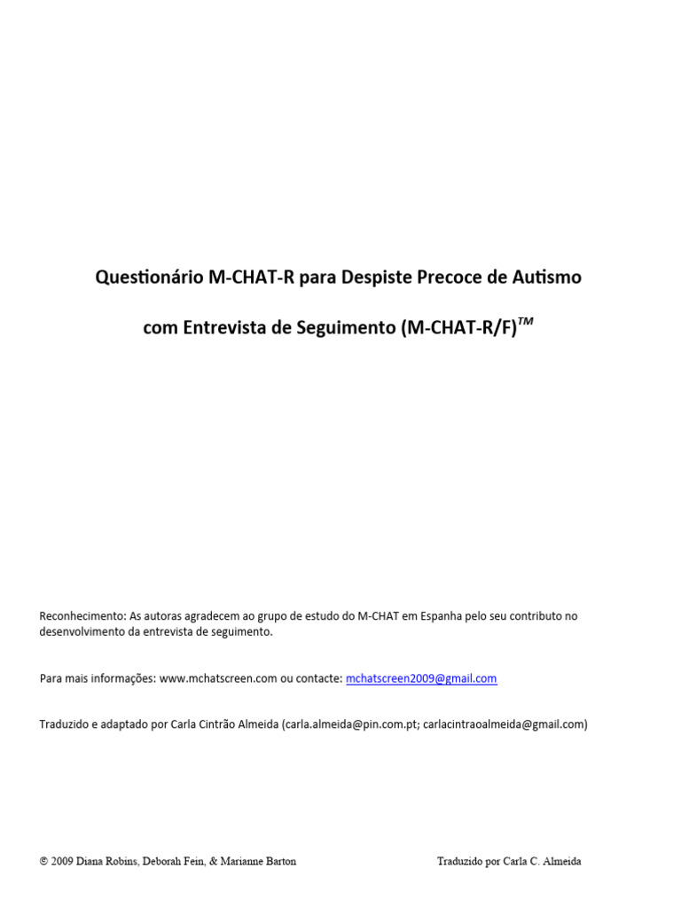 [Link]. O M-CHAT-R/F é um instrumento com registo de direitos de autor e o seu uso deve seguir as