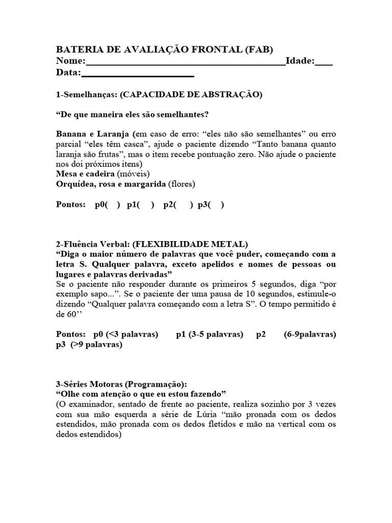 BATERIA DE AVALIAÇÃO FRONTAL (FAB)