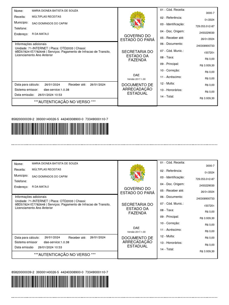 DOCUMENTO DE ARRECADAÇÃO ESTADUAL - DAE MÚLTIPLAS RECEITAS