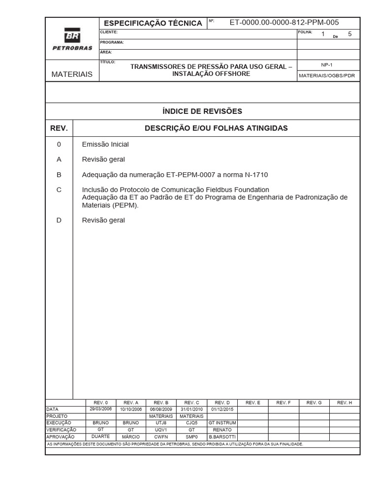 ESPECIFICAÇÃO TÉCNICA ET-0000.00-0000-812-PPM-005 D