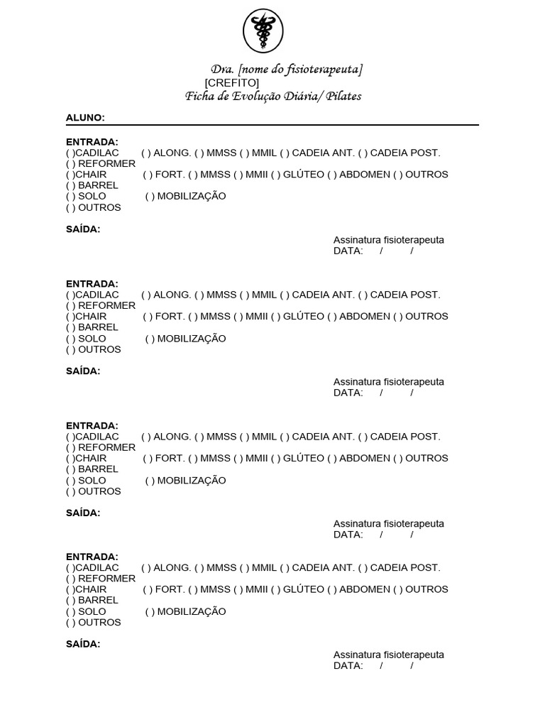 Ficha de Evolução Diária/ Pilates
