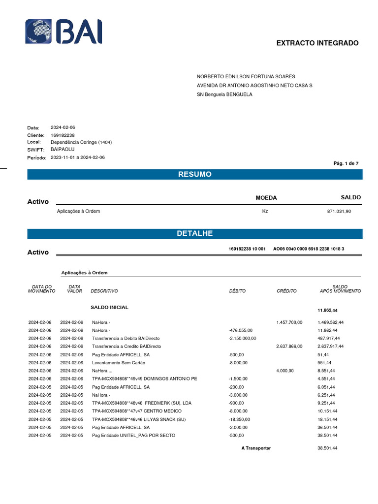 2024-02-05 2024-02-05 Pag Entidade AFRICELL, SA -1.000,00 39.001,44