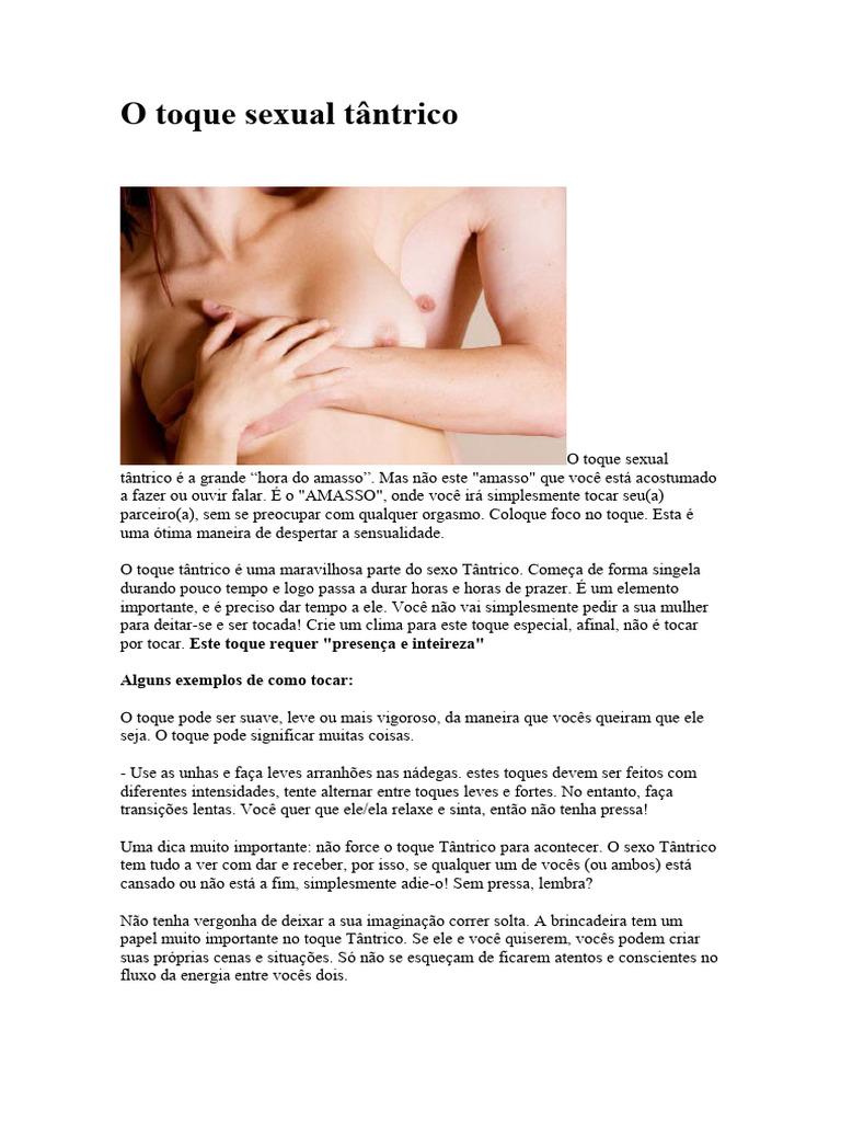 pausas durante o toque Tântrico, mas tente não quebrar o contato com a pele. Continue