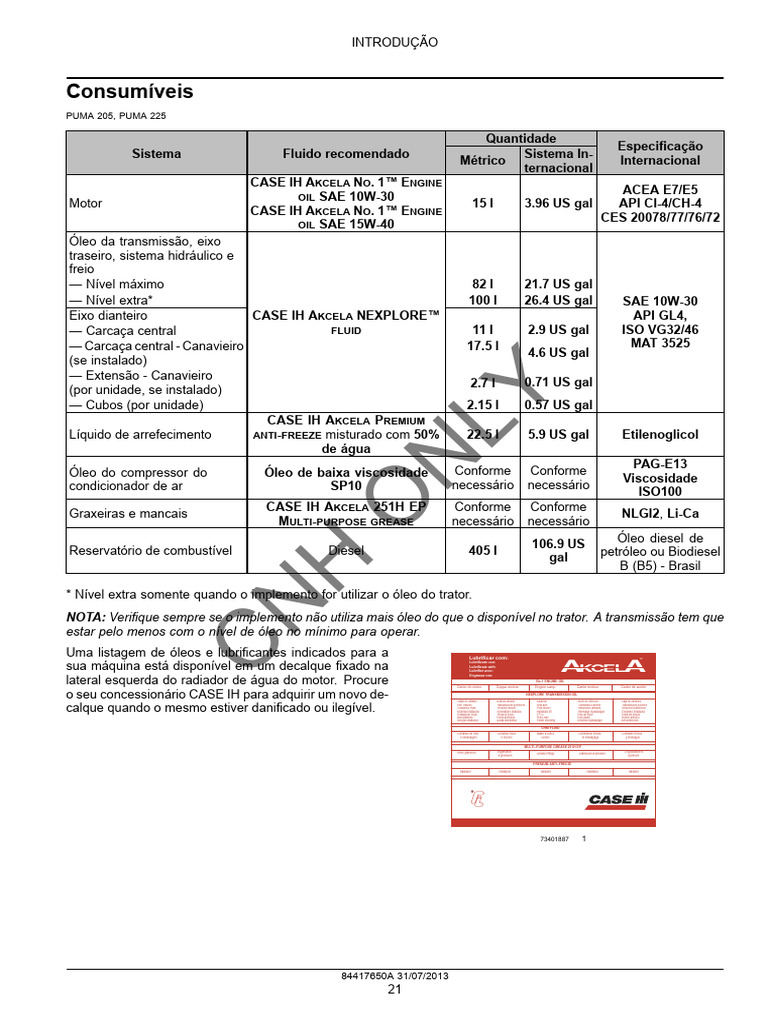 NOTA: Verifique sempre se o implemento não utiliza mais óleo do que o disponível no trator. A transmissão tem que