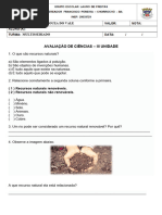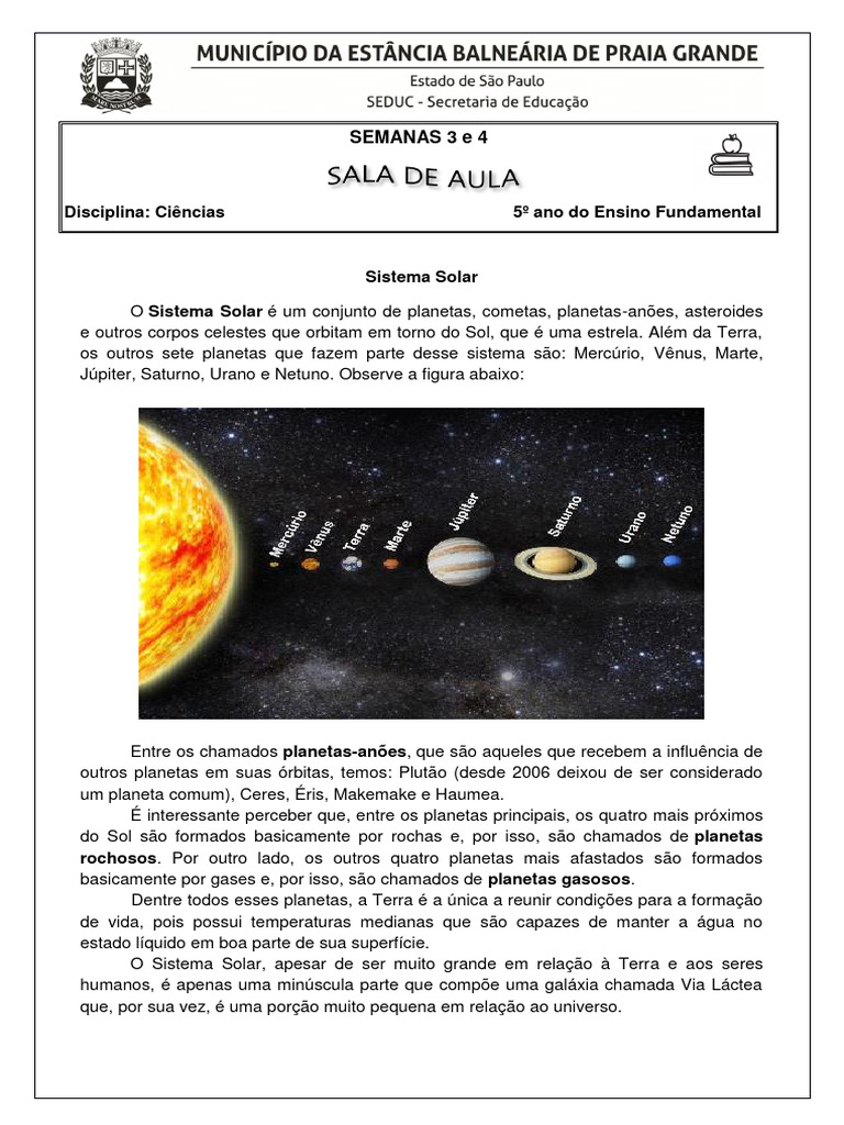 Disciplina: Ciências 5º ano do Ensino Fundamental