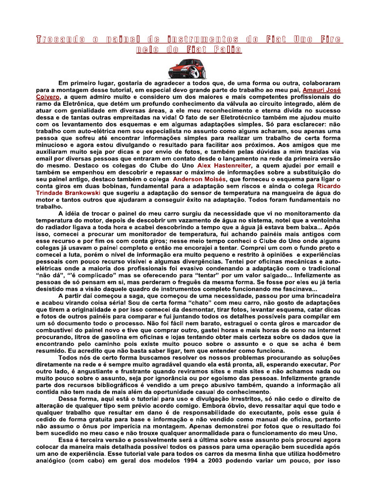 um sé documento todo o proceso. Nao foi facil nem barato, estraguei o conta giros e marcador de