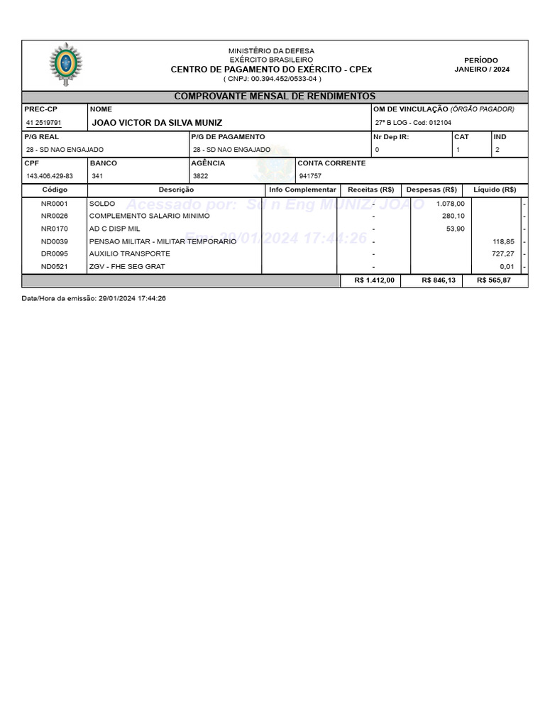 CENTRO DE PAGAMENTO DO EXÉRCITO - CPEx JANEIRO / 2024