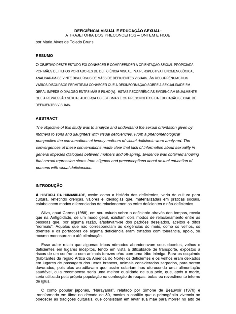 BRUNS, M. A. T. Sexualidade e Deficiência Visual – Encontro ou Desencontro? V