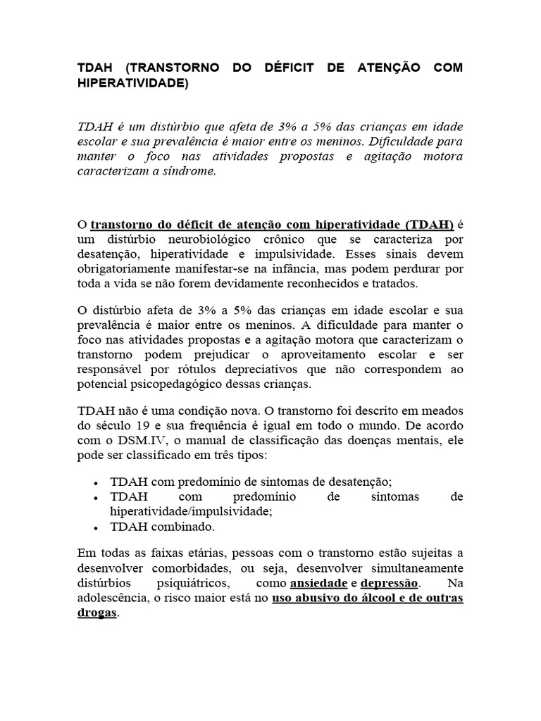 TDAH (TRANSTORNO DO DÉFICIT DE ATENÇÃO COM