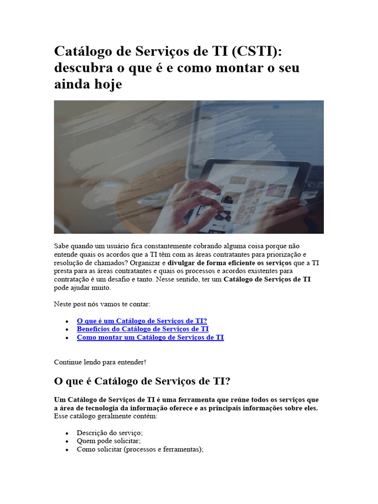 contratação é um desafio e tanto. Nesse sentido, ter um Catálogo de Serviços de TI