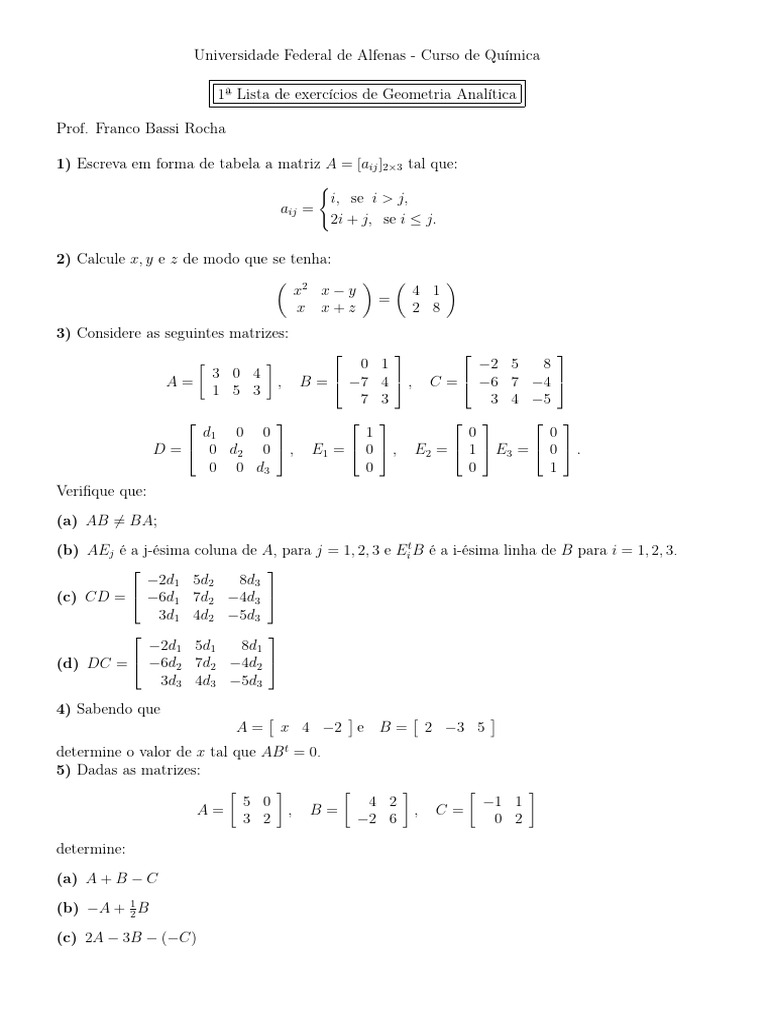 1) Escreva em forma de tabela a matriz A = [aij ]2×3 tal que: