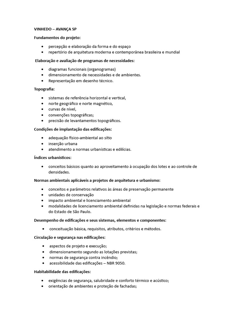 e) saneamento ambiental. PROJETO DE EDIFICAÇÕES