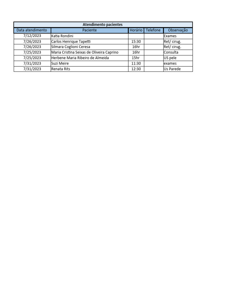 7/26/2023 Carlos Henrique Tapetti 15:30 Ret/ cirug.