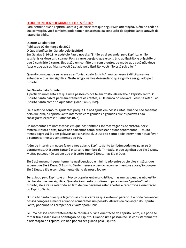importante notar que, se não estamos sendo guiados pelo Espírito Santo, então estamos sendo