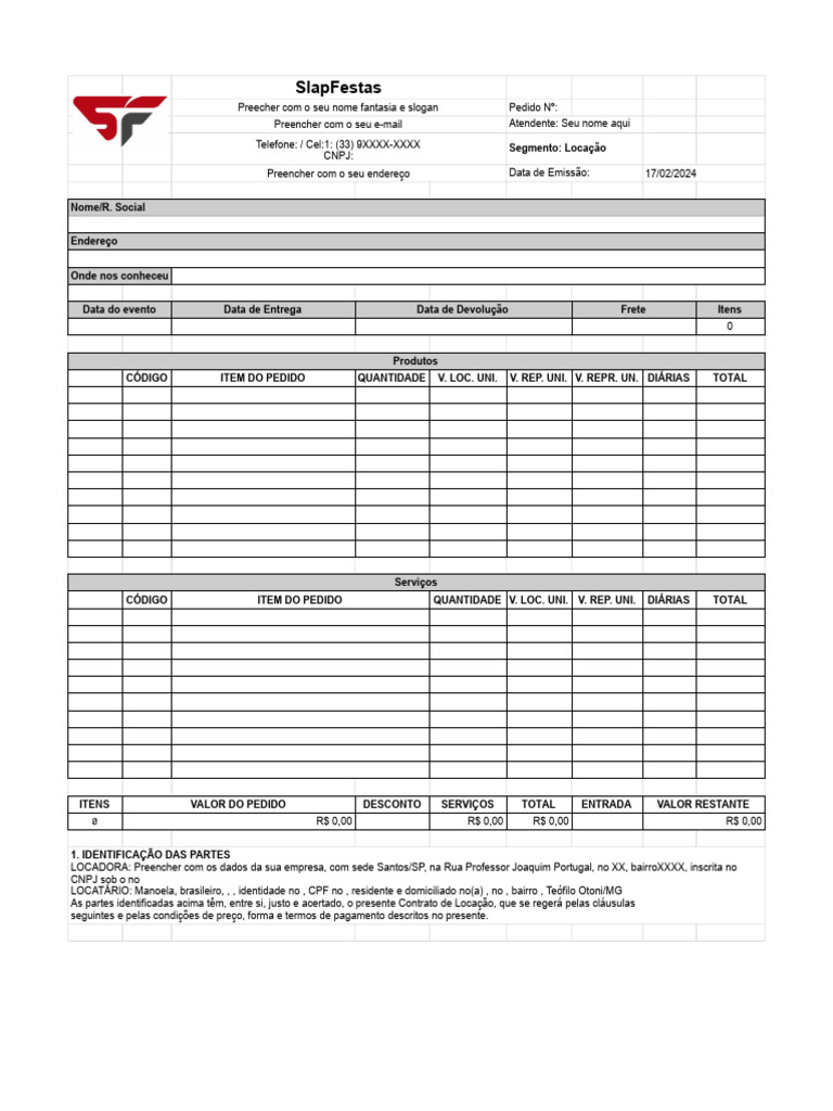 Preecher com o seu nome fantasia e slogan Pedido Nº: