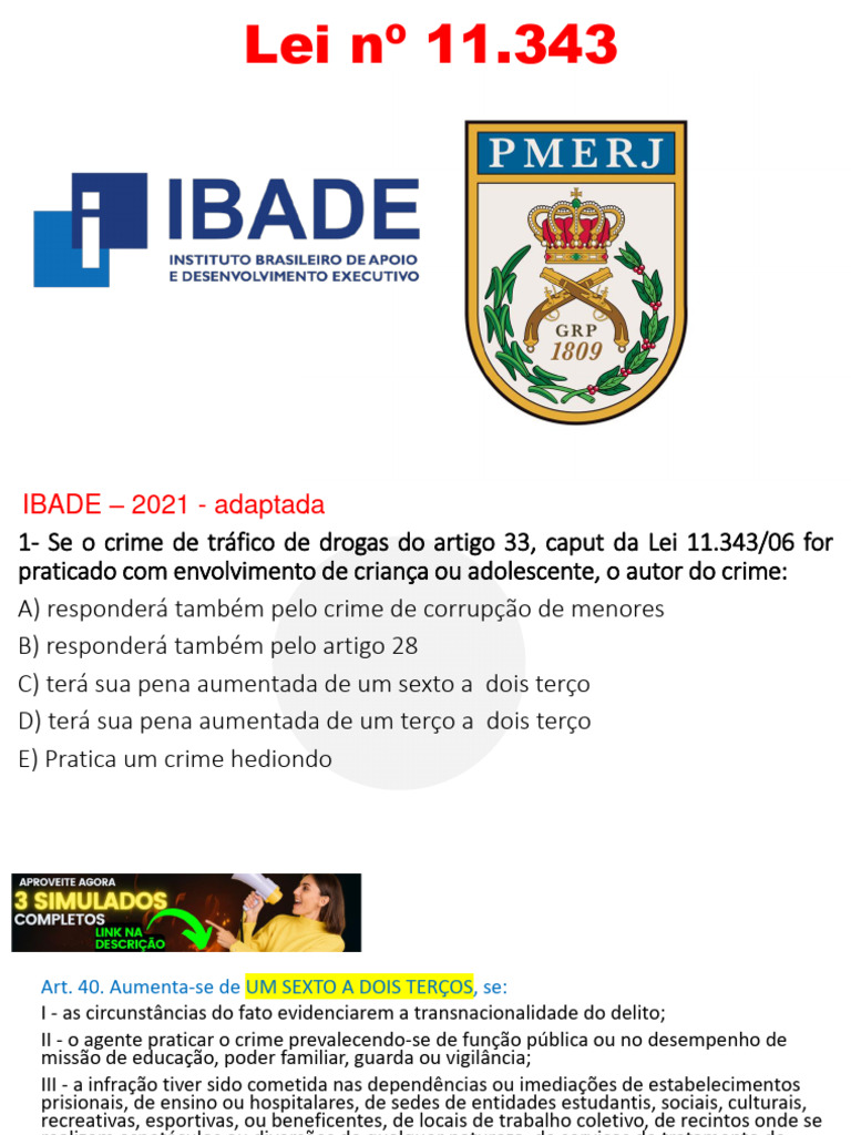 6- Com base na Lei de Drogas (Lei nº 11.343/06), analise as afirmativas abaixo e dê valores Verdadeiro (V) ou Falso (F).