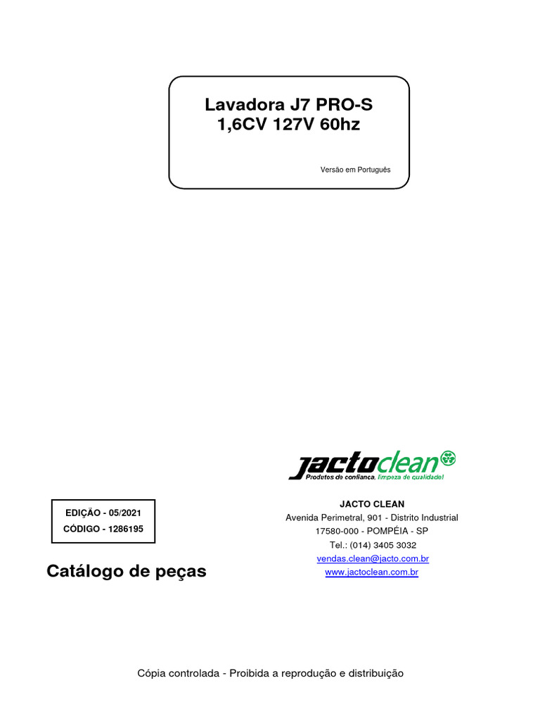 00 1286195 Lavadora J7 PRO-S 1,6CV 127V 60hz 1
