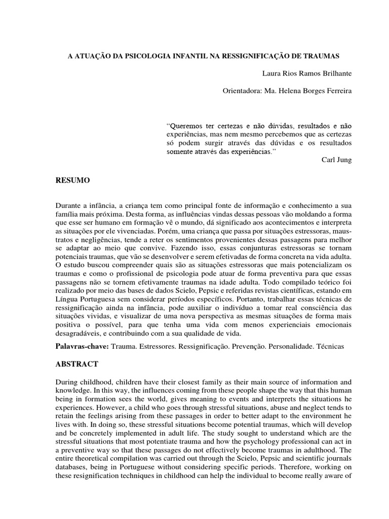 Palavras-chave: Trauma. Estressores. Ressignificação. Prevenção. Personalidade. Técnicas