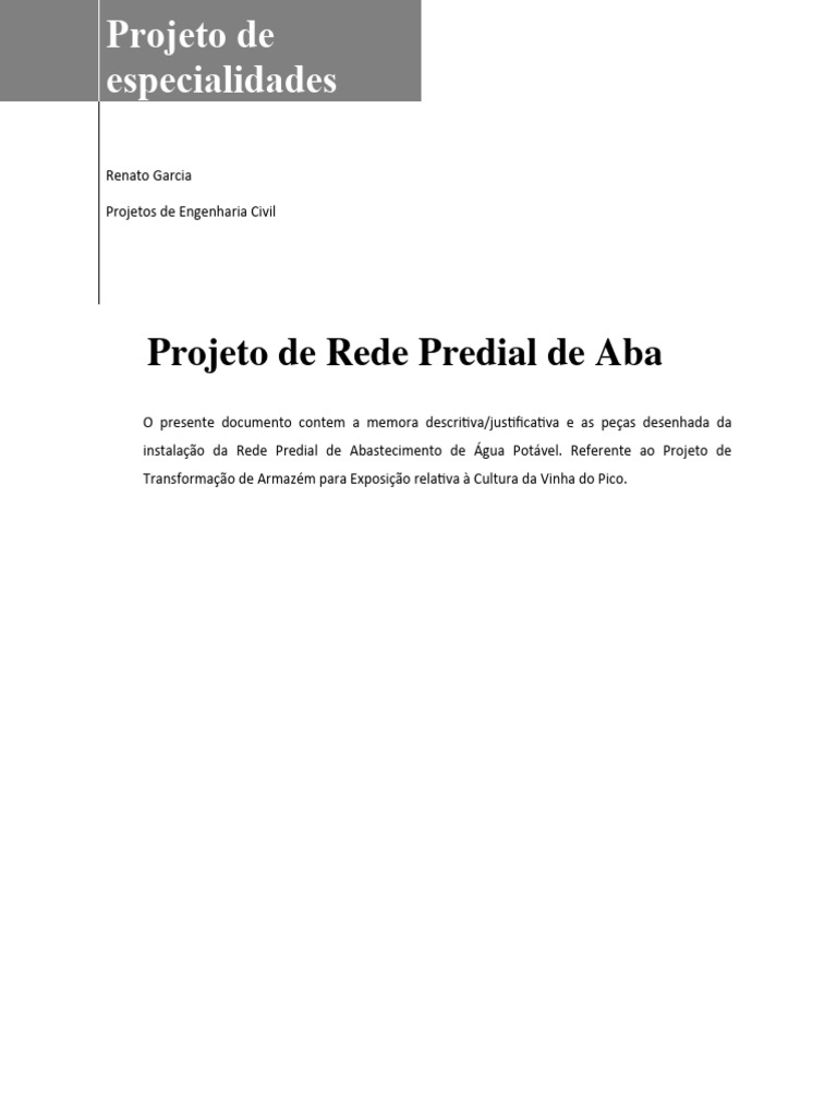 Predial de Abastecimento de Água Potável, num dos volumes que compõem o