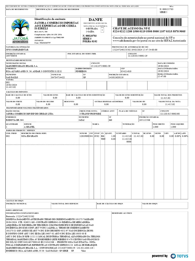 NF-E COMPLEMENTAR 152247249253502 19/02/2024 15:47:54-03:00