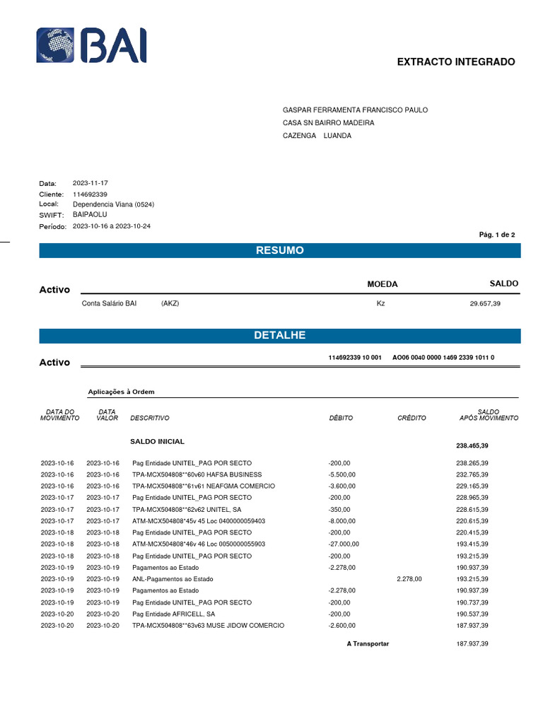 Conta Salário BAI (AKZ) Kz 29.657,39