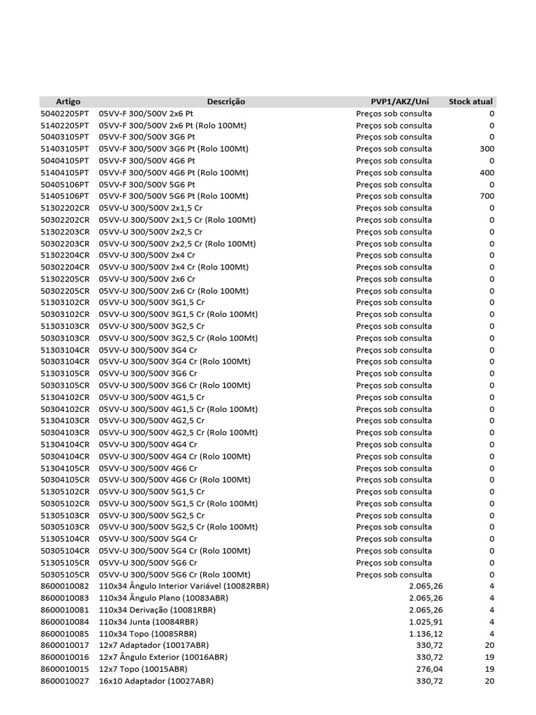 50405106PT 05VV-F 300/500V 5G6 Pt Preços sob consulta 0