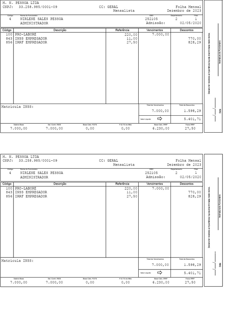 CNPJ: 33.258.985/0001-09 CC: GERAL Folha Mensal