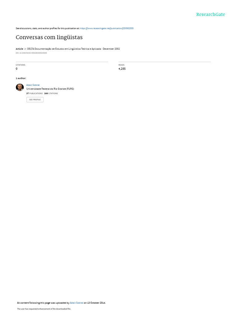 282 D.E.L.T.A., 19: 2 SOBRAL: CONVERSAS COM LINGUISTAS 367