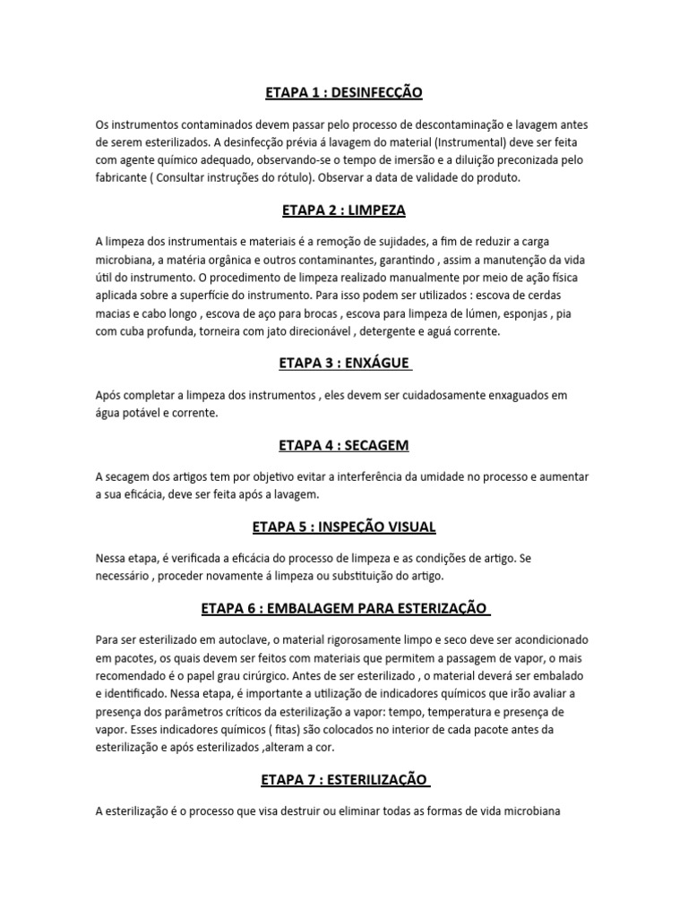presentes. O processo de esterilização indicado é por meio da autoclave , atente-se sempre para