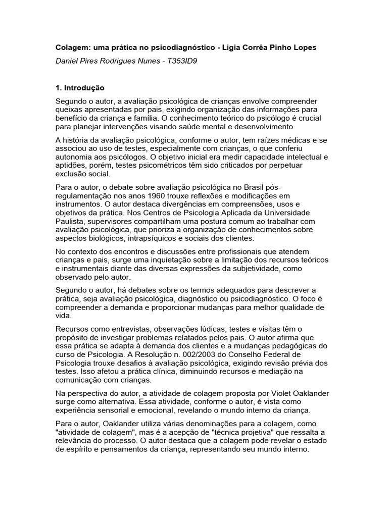 Colagem: uma prática no psicodiagnóstico - Ligia Corrêa Pinho Lopes