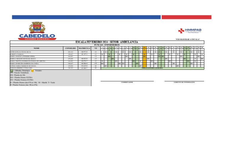 ESCALA FEVEREIRO 2024 - SETOR: AMBULÂNCIA