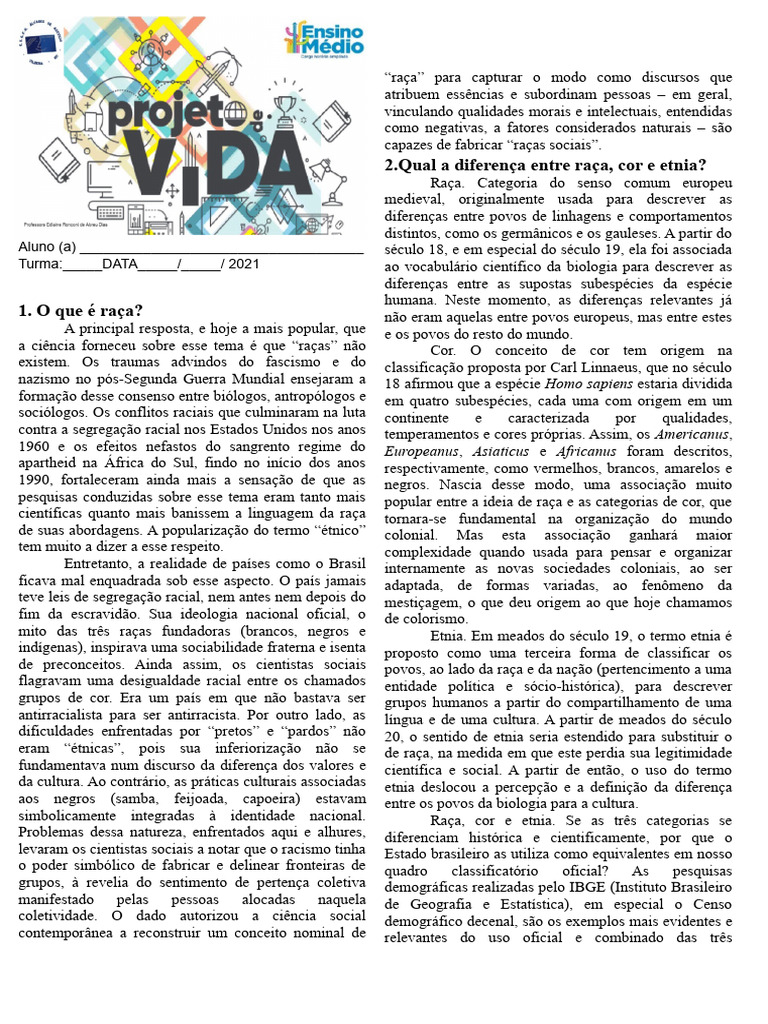 1. O que é raça? não eram aquelas entre povos europeus, mas entre estes
