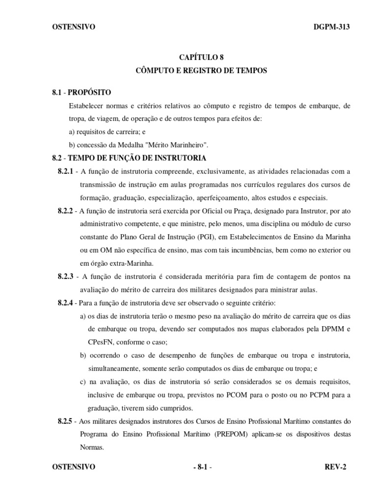 8.2.6 - Nos Estabelecimentos de Ensino da MB, a contagem do Tempo de Instrutoria será feita para os