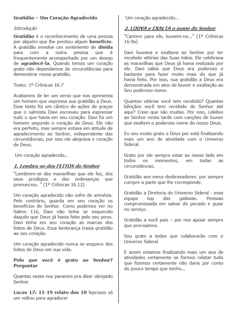 Esse texto foi um cântico de ações de graças bênçãos você tem recebido do Senhor até