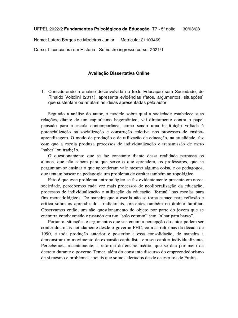 UFPEL 2022/2 Fundamentos Psicológicos da Educação T7 - 5f noite 30/03/23