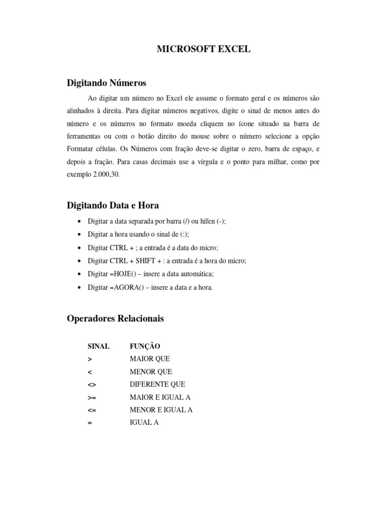 alinhados à direita. Para digitar números negativos, digite o sinal de menos antes do