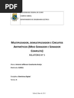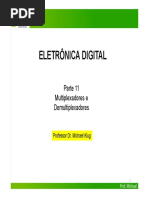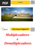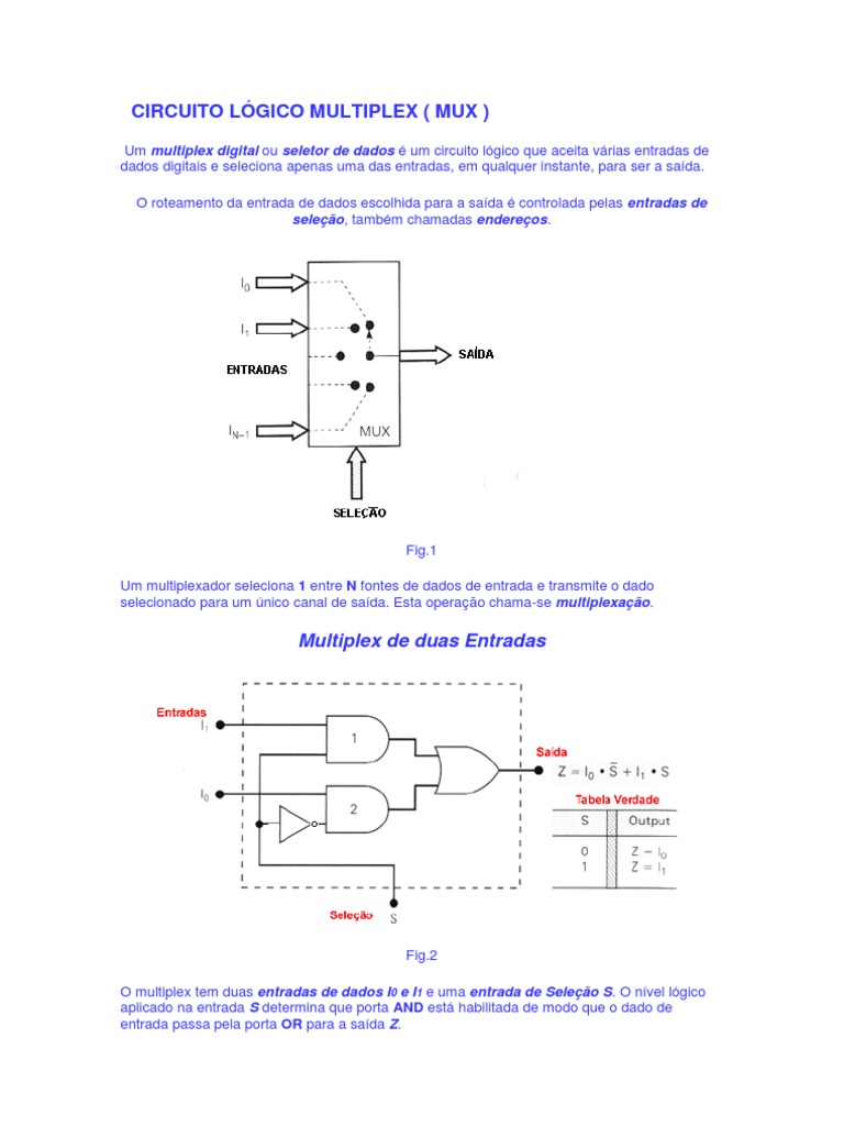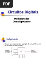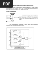 Fig.3 O multiplex tem quatro entradas de dados I0, I1, I2e I3, duas entradas de seleo S1e S0 que selecionam qual entrada de dados ser transmitida para a sada [Link] a tabela verdade na figura acima para deduzir a sada Z a partir da combinao de S1S0. Existem disponveis comercialmente multiplex de duas, quatro, oito e 16-entradas nas famlias lgicas TTL e CMOS.