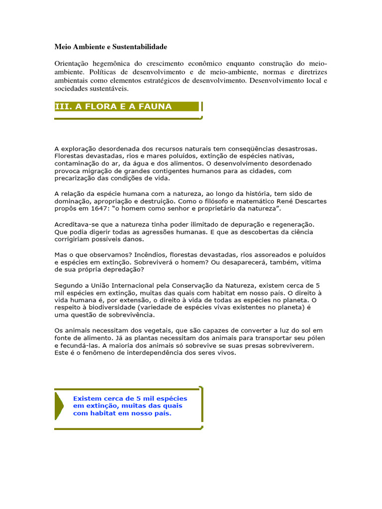 mil espécies em extinção, muitas das quais com habitat em nosso país. O direito à