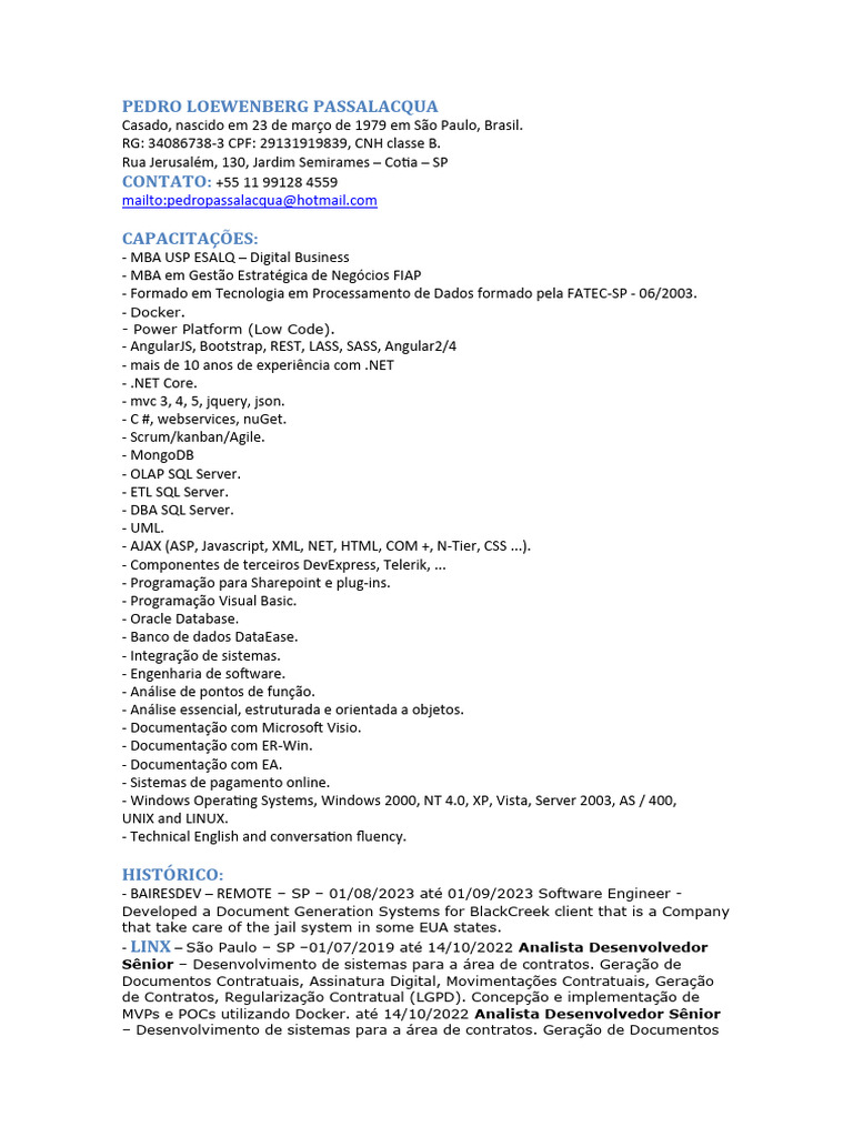 - LINX – São Paulo – SP –01/07/2019 até 14/10/2022 Analista Desenvolvedor