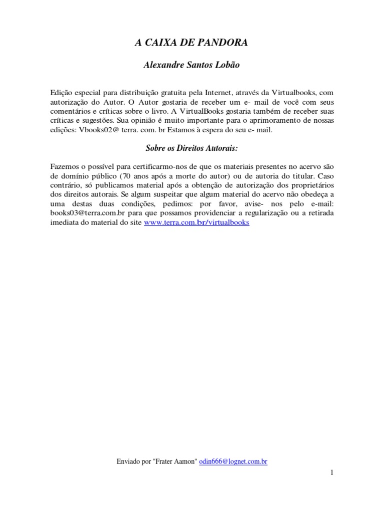comentários e críticas sobre o livro. A VirtualBooks gostaria também de receber suas