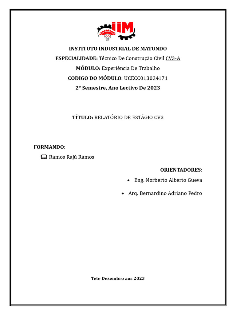 do estágio, assim sendo, eram fornecidos poelo Instituto Industrial de Matundo.