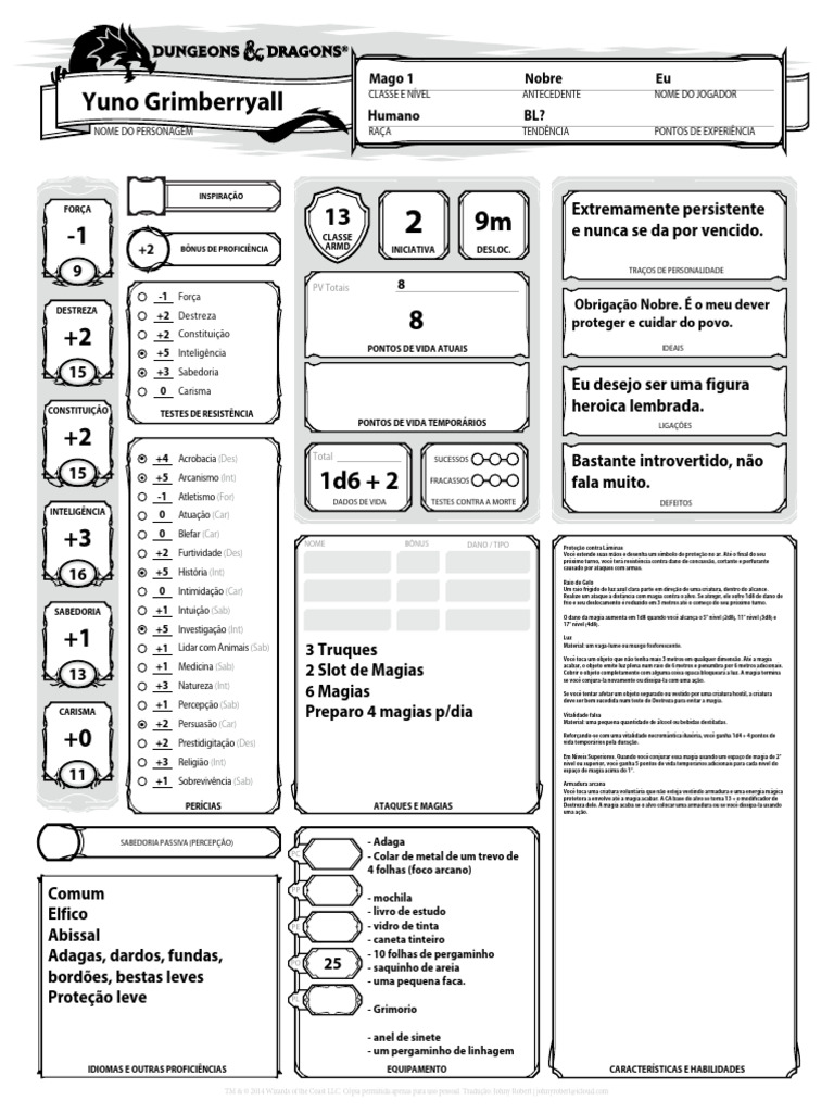 NOME DO PERSONAGEM RAÇA TENDÊNCIA PONTOS DE EXPERIÊNCIA