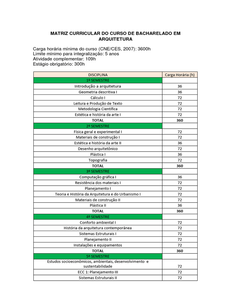 Carga horária mínima do curso (CNE/CES, 2007): 3600h