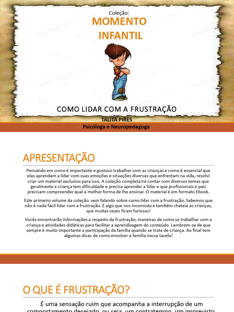 Vocês encontrarão informações a respeito da frustração, maneiras de como se trabalhar com a